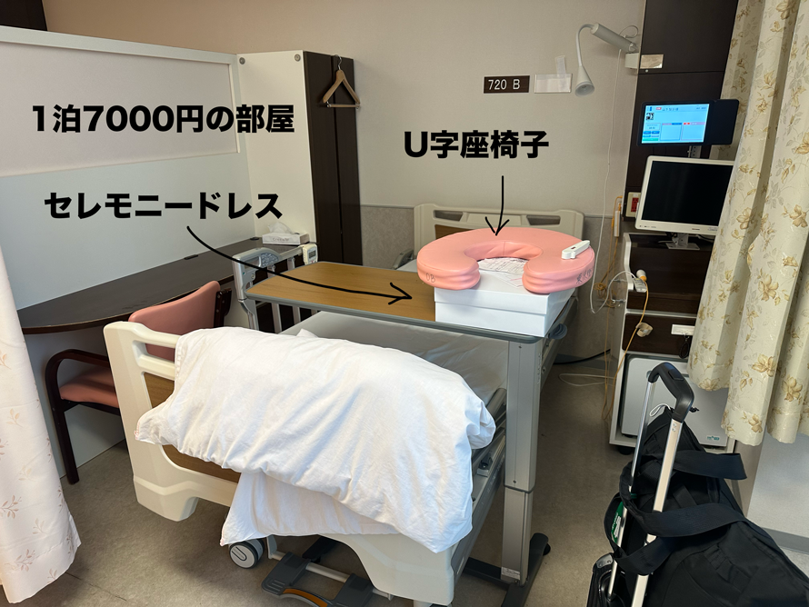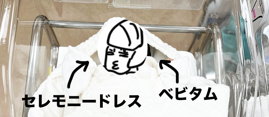 受付でスーツケースを預かってもらい、セレモニードレスが入った箱を片手に新生児室へ。
