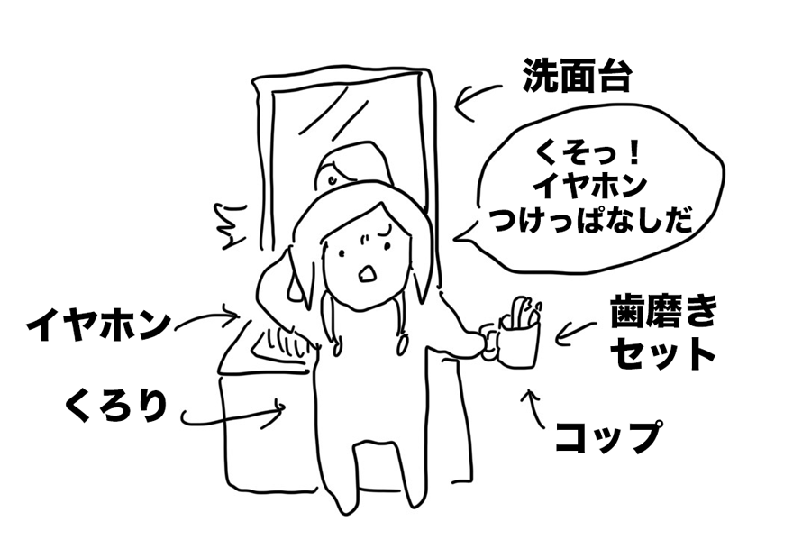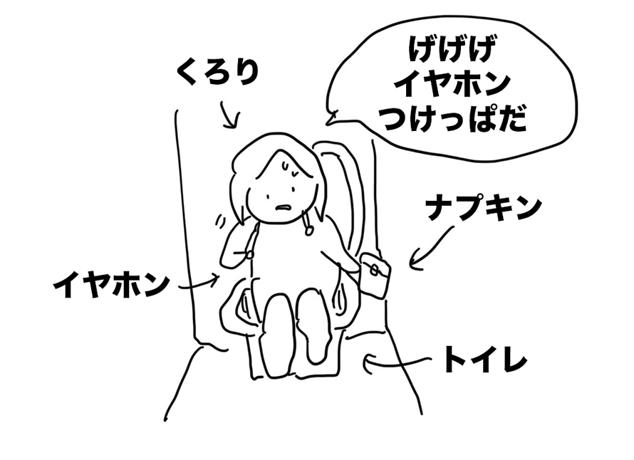 トイレで用を済ますと、今度は首にイヤホンがかかっていることに気づく。