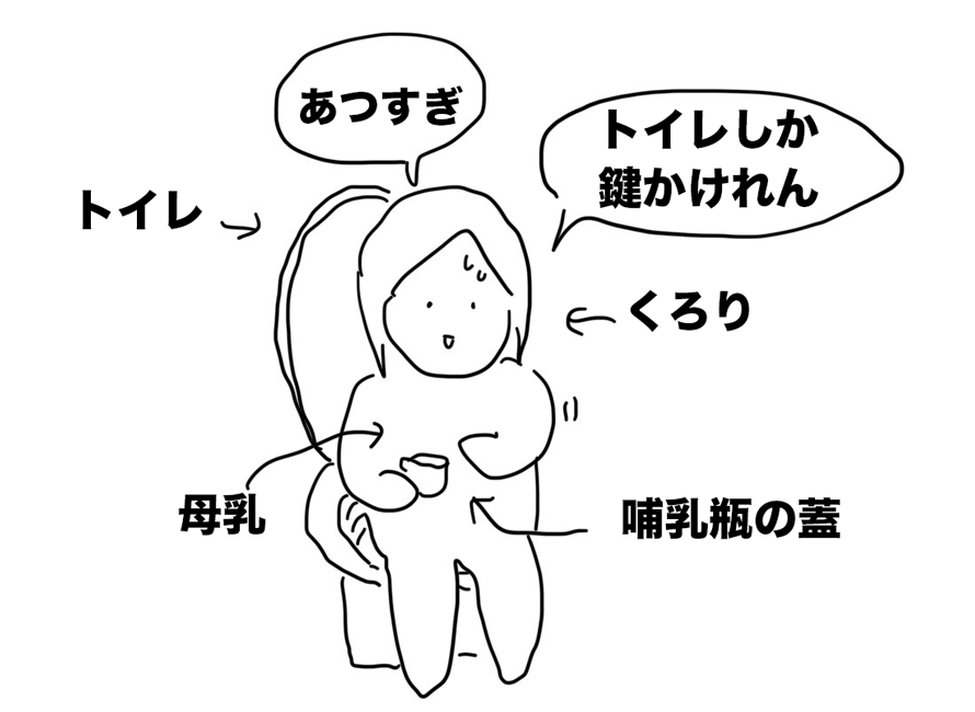 まずはトイレで搾乳でもしよう。毎3時間おきに頑張っている甲斐もあって、ちょっと乳の量が増えてきた気がする。