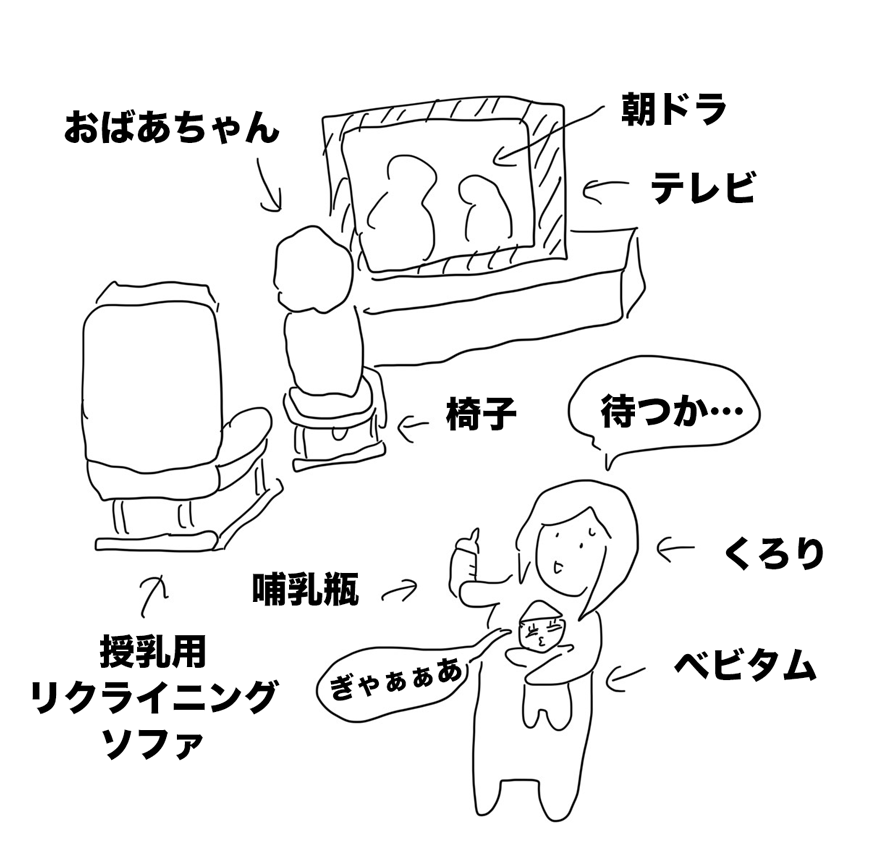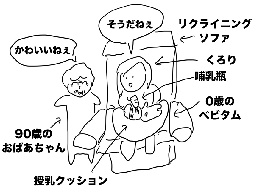 仕方なくミルクのみをあげていると、おばあちゃんが横から覗き込んでいる。