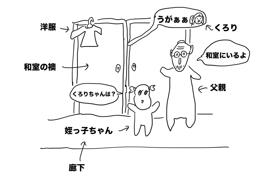 そのままリビングに戻る父親。リビングの声は、和室に全部筒抜けだ。
