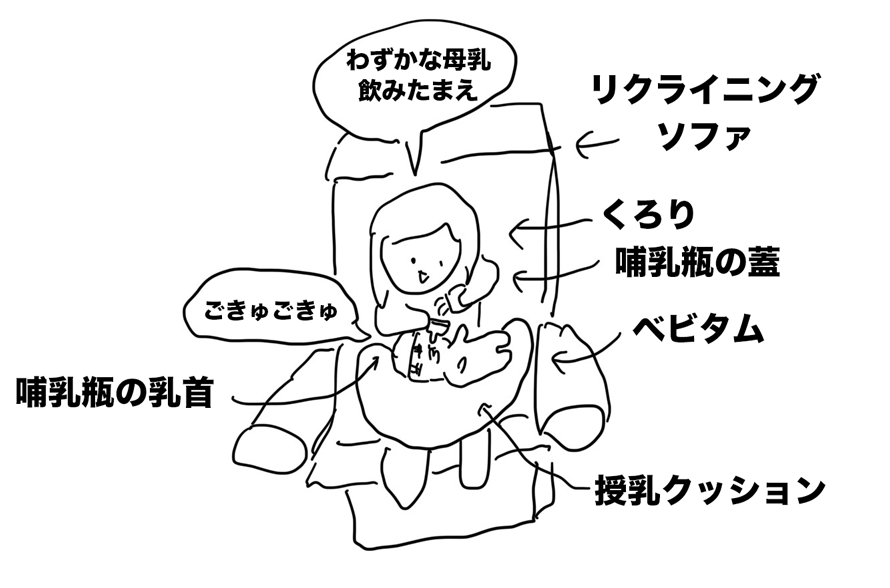 本当は乳を直接ベビタムに咥えさせる練習もしたいのだが、実家のこの環境。