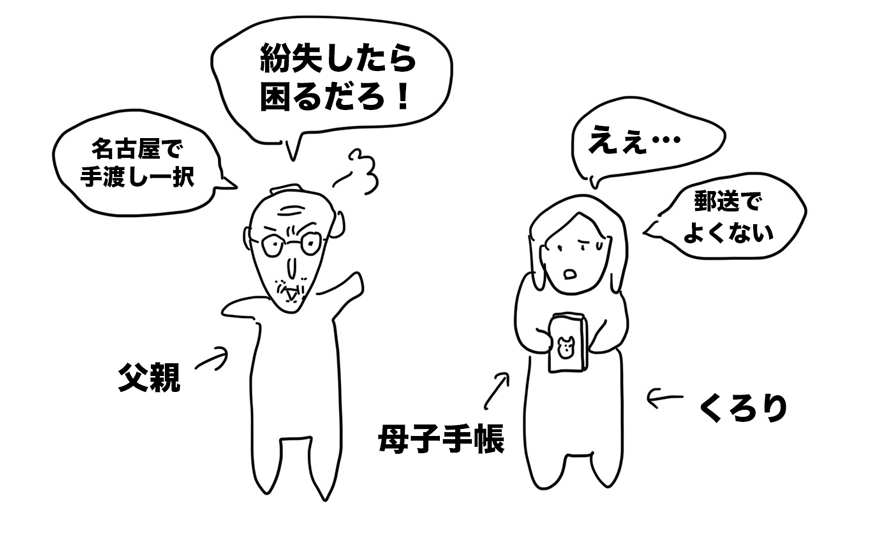 父親「郵送だと紛失の可能性がある!母子手帳なくしたらおしまいだ!」