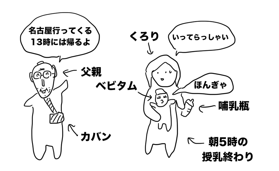 父親「じゃあ、名古屋行ってくる。13時には帰るから」