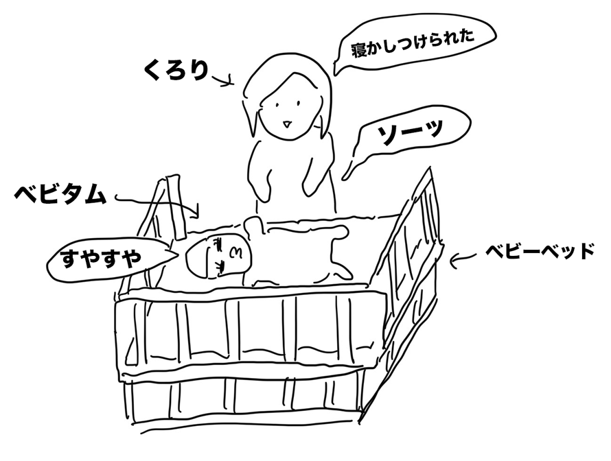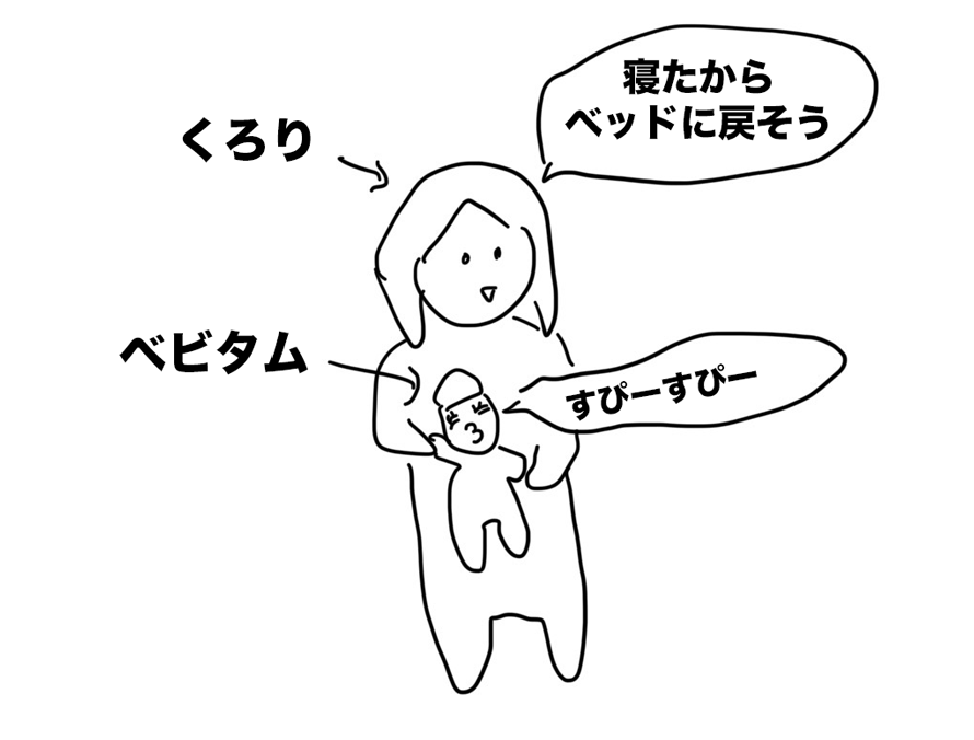 今回も小分けにミルクをあげ、ゲップ出しも念入りに行った結果、ベッドに置いても全然泣かず!