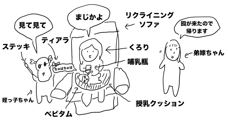当然寄ってくる姪っ子ちゃん。ステッキやらティアラやらを見せつけられながらミルクをあげた。