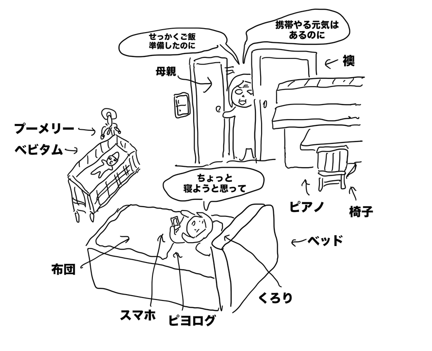 正直、姪っ子ちゃんと遊ぶ元気は残っていなかったので、私は寝ていることにしてもらって和室に閉じこもることに。