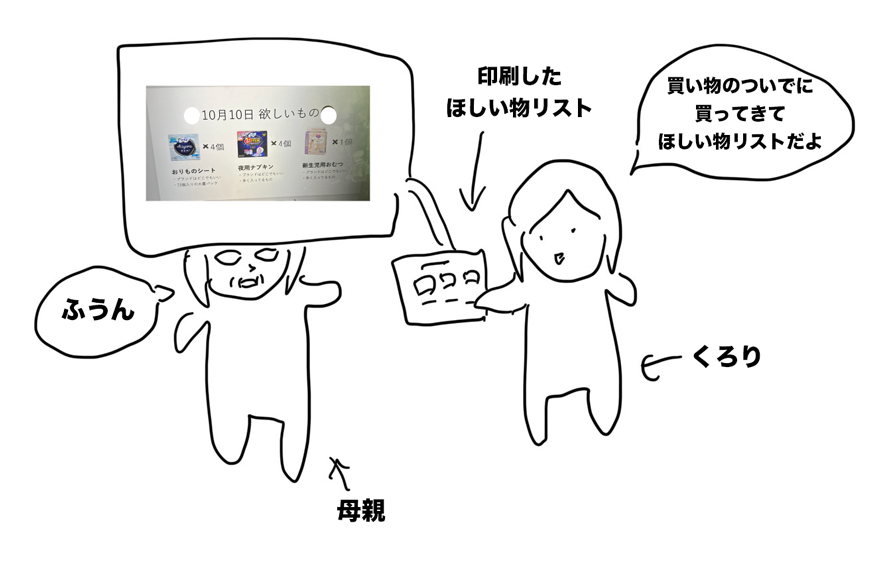 ということで、両親が買い物するときに、ついでに買っておいてほしいものリストをパワポで見やすく準備。