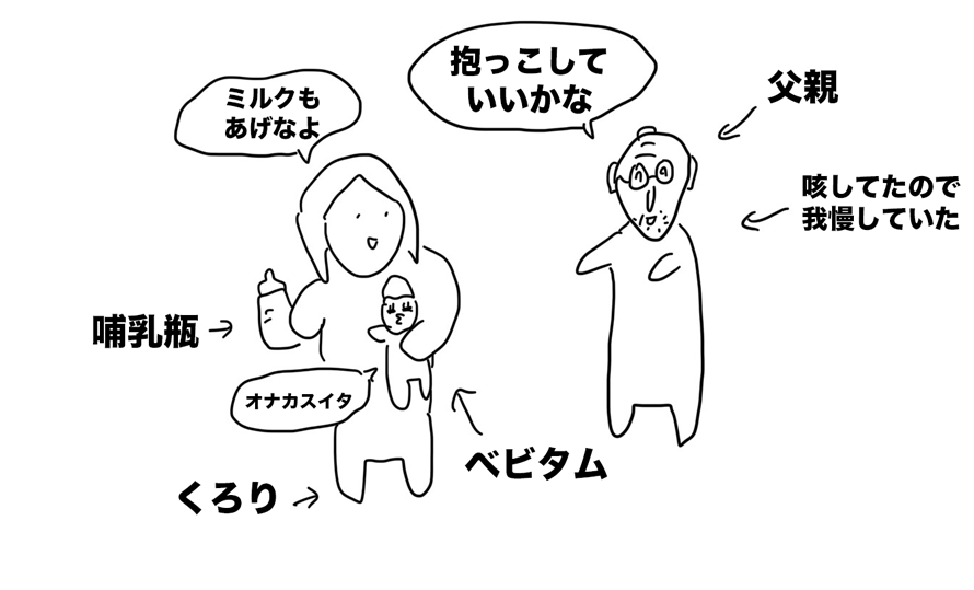 さて、お次は11時の授乳だ。準備をしていると父やが寄ってくる。