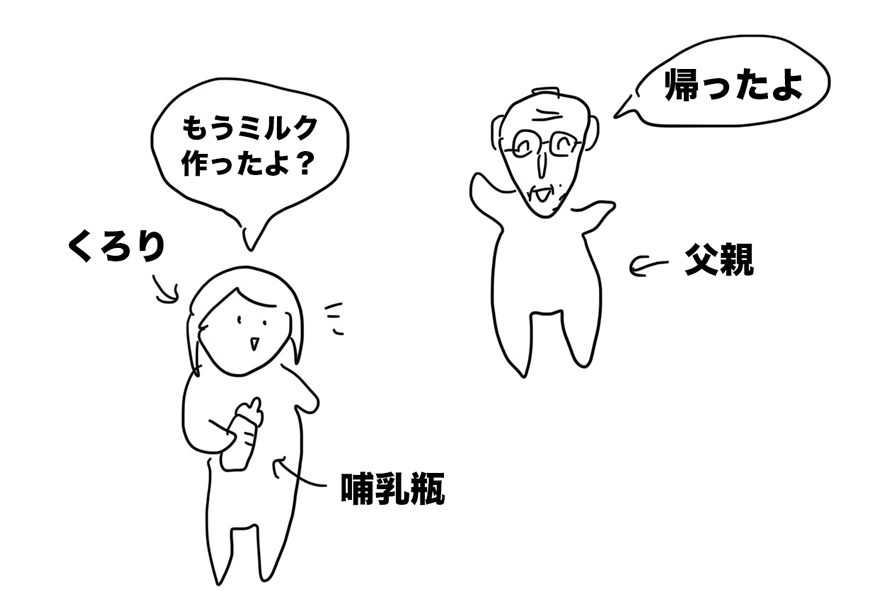 宣言通り、14時ジャストに帰宅する父親。しかし、ミルクはもう完成している。