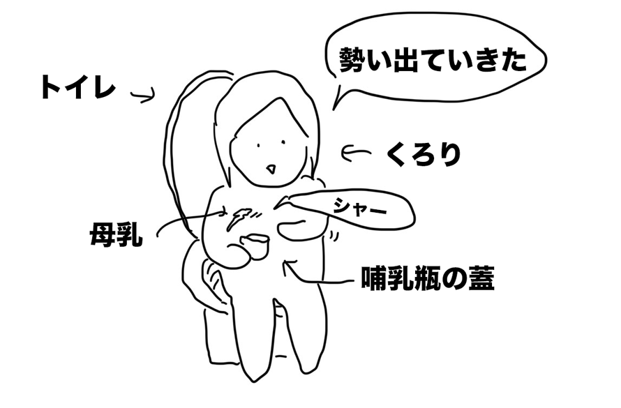 ここ数時間、泣き叫ぶベビタムをあやしてあやして、なんとか14時までおやつのミルクもあげず持ち堪え、母親に小言を言われながらもミルクを作り、トイレで必死に搾乳までして、ようやく授乳準備ができたところ。