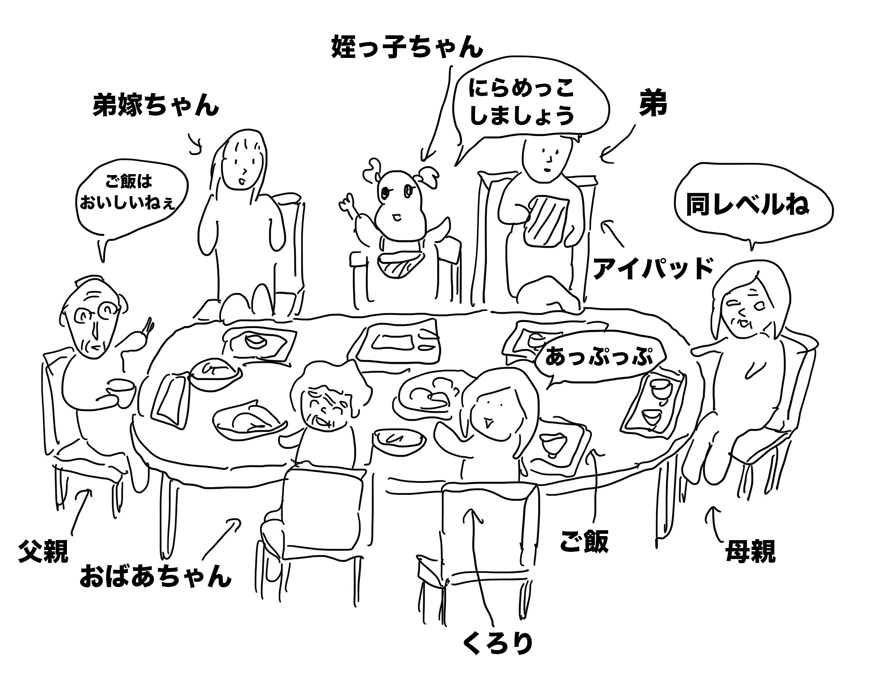 そう思って、最近はみんなが夜ご飯を食べ終わる頃に、のそーっと和室から出てご飯を食べていた。