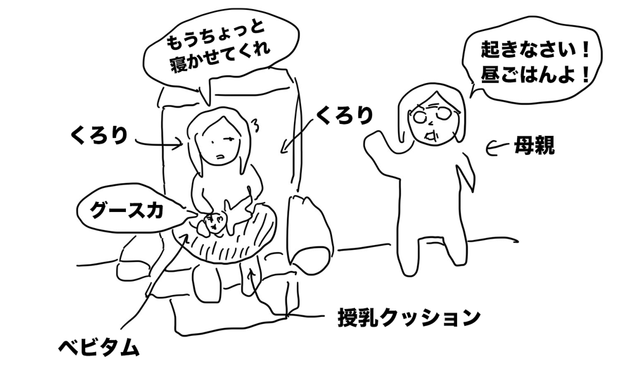 気持ちよく寝ていたのに、起床してリビングに降りてきた母親に起こされてしまった。
