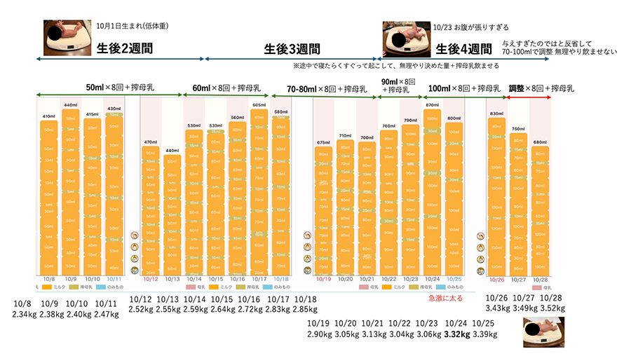 くろり「明日の検診で質問しやすいように、過去のミルクの量をまとめたいからお願い」