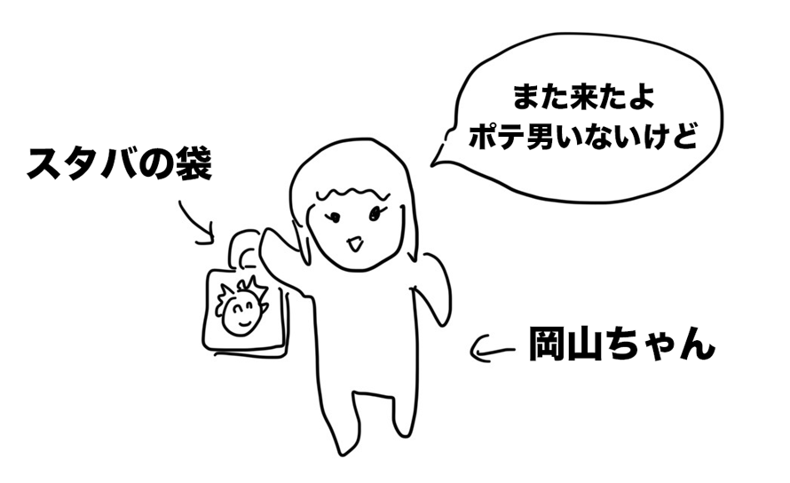 パンプキンラテなど、家族全員分のスタバの飲み物を買ってくる岡山ちゃん。
