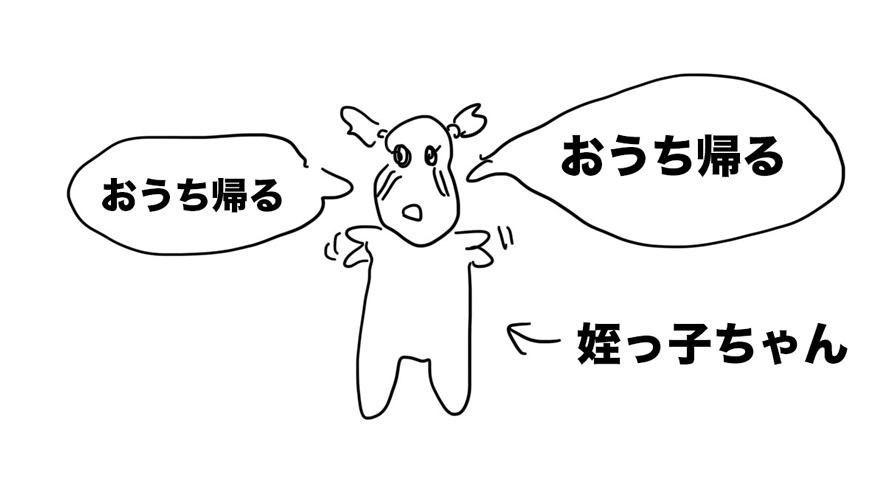 そんな中、構ってもらえない姪っ子ちゃんは悲しみに暮れ、おうち帰る連呼を始める。