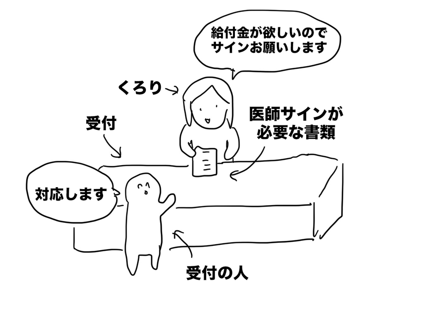 検診は小児科だが、出産給付金をもらうために医者に書いてもらうサインは、産婦人科の方でお願いしないとならない。