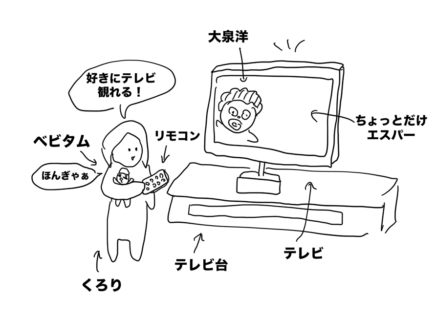 リビングを独り占めできるので、ベビタムを抱っこしたまま、見逃したドラマ「ちょっとだけエスパー」を観たりして、至福の時間を過ごした。