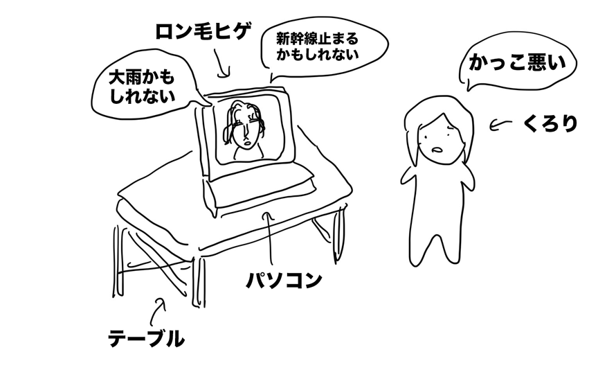 ロン毛ヒゲ「大雨らしい。新幹線止まるかも。明日の夜はやっぱり厳しいかも」