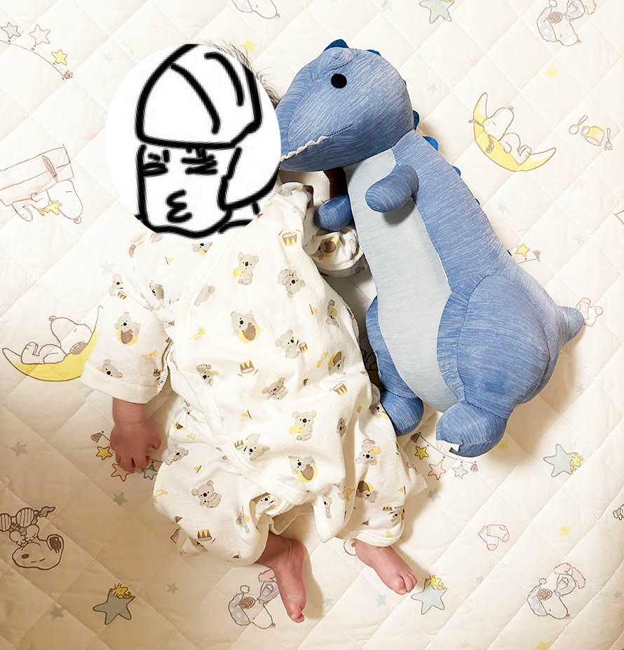 最近はベビタムのお腹を身体に密着させると、すやすや寝てくれる。まあ、話したらすぐに寝るんだが。