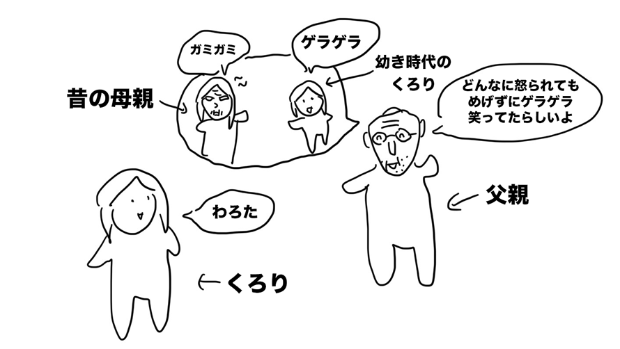 父親「くろりは、食べ物を口に入れながら喋って、母親にめちゃくちゃ怒られていたけど、めげずにゲヘゲヘ笑いながら同じことを繰り返していたんだって」
