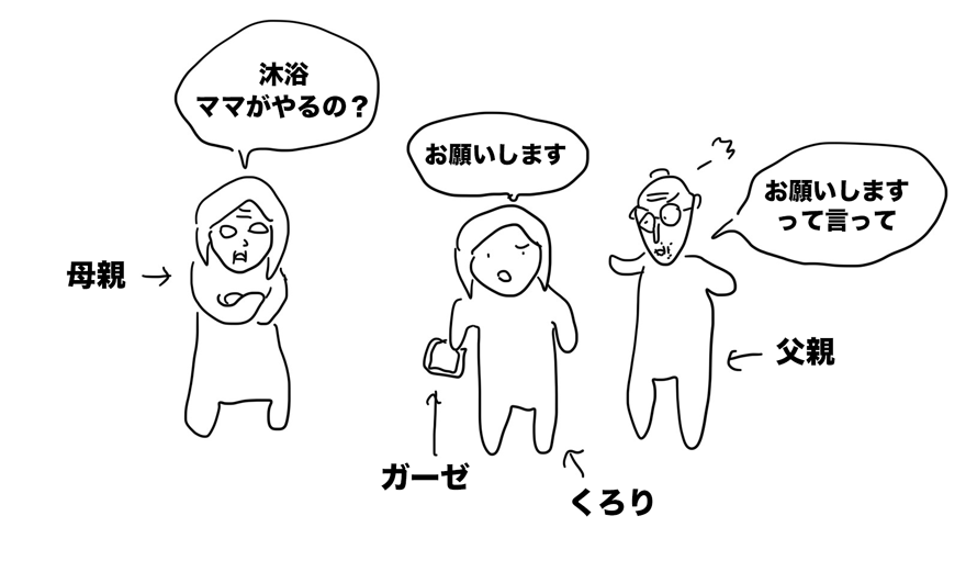 沐浴は普段母親と2人でやっている。