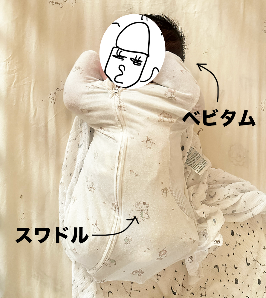 さっそくスワドルにベビタムをつっこんでみたら爆睡だった。