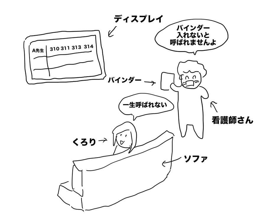 看護師「バインダーをこの中に入れないと、順番呼ばれないですよ」