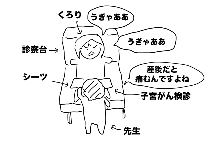 ということで早速、子宮がん検診のために股をグリグリされる。