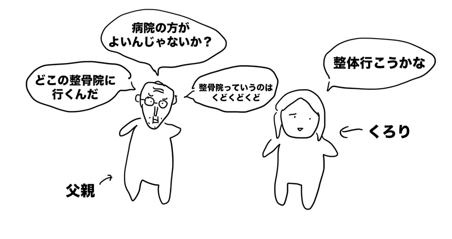 父親「普通の病院に行ったほうがいいんじゃないか?整骨院っていうのは・・くどくど」
