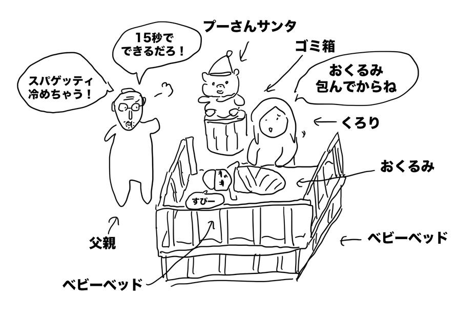くろり「今おくるみ巻いてるから待って」