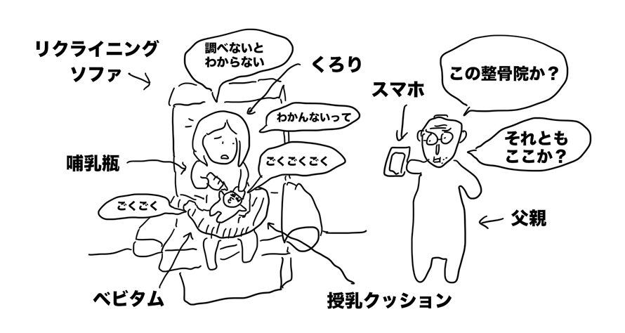 食後、ベビタムにミルクをあげていると父親からまた整骨院の話をされる。