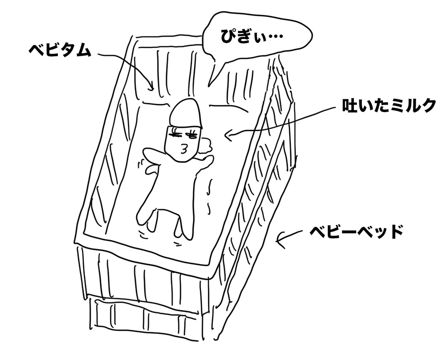 ベッドのシーツを触ってみると、ミルクを吐いていたようでベビタムに申し訳なかった。