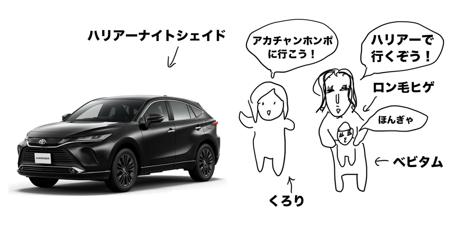 育児に必要だからという理由で、父親から買ってもらった新車ハリアー