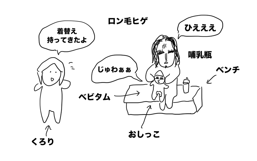 授乳室に戻ると、ロン毛ヒゲがミルクをあげ終わって、ベビタムの背中をトントンしているではないか。