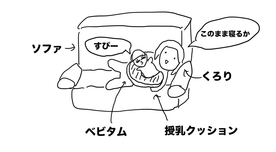 今日も今日とてベビーベッドで全然寝てくれなかったので、ベビタムをお腹に抱き抱えたまま、ソファで横になって就寝。