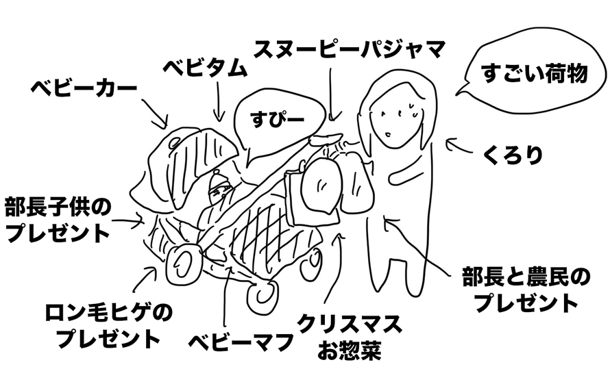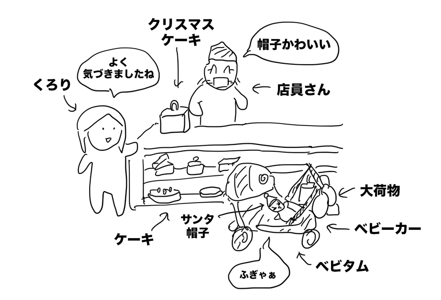 さて、ぱんぱんのベビーカーを押して、ケーキ屋に向かおう。