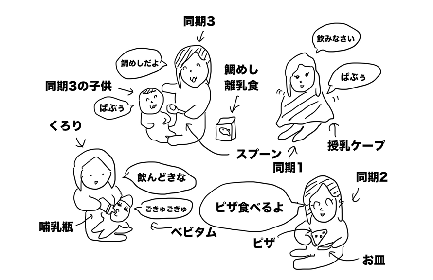 同期1は5ヶ月の子、同期3は1年3ヶ月の子供も一緒だ。