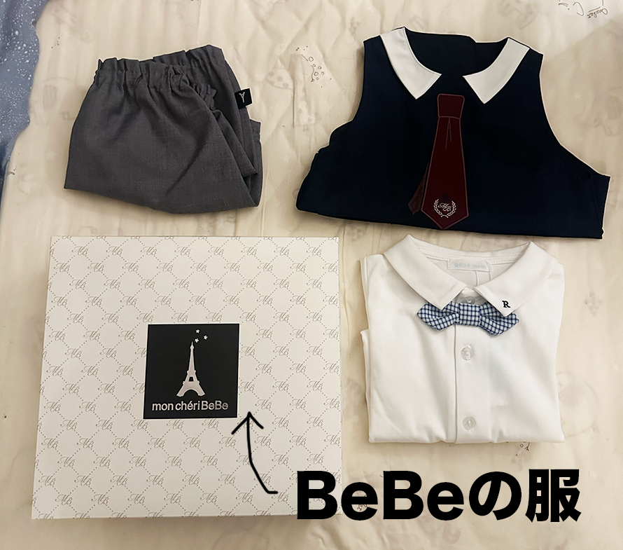 同期3からベビー服のお古ををもらったり、出産祝いにbebeのお出かけ服とお菓子をもらったり、まあなんて平和!