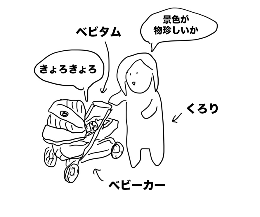ベビーカーで歩いている最中、ベビタムはずっと景色をキョロキョロしていて可愛かったが、館内に入った瞬間に寝てしまった。