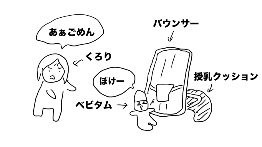 今日一番の反省は、ベビタムをバウンサーに乗せてミルクを作っていたら、その間にベビタムがバウンサーから落ちてしまったこと。