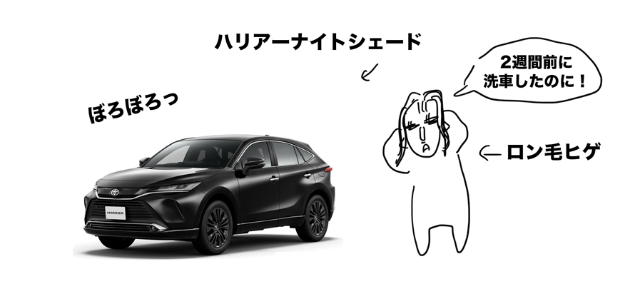 2週間ぶりにハリアーに乗るロン毛ヒゲは、車がばか汚れていて絶望していた。