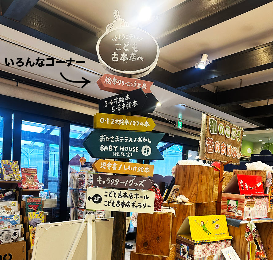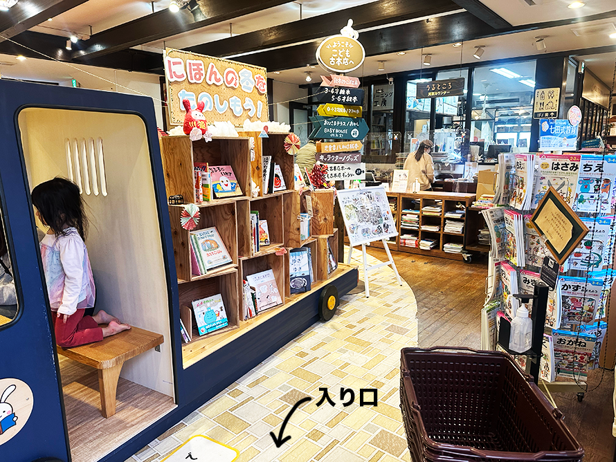 1Fは、古本をクリーニングするスペースや、幼児・小学生向けなど、児童書がたくさん!