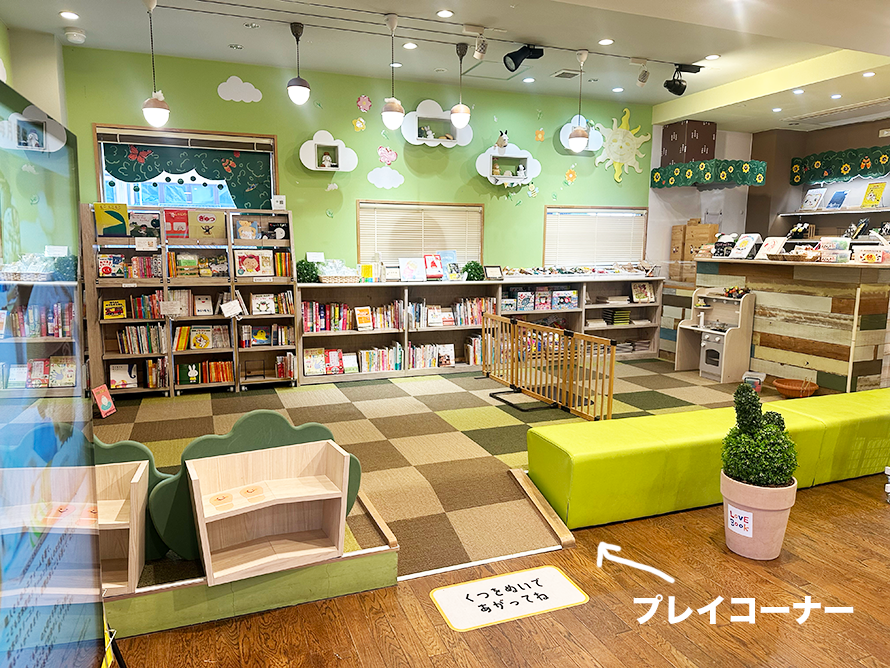 1Fの角っこのところには、幼児向けのプレイグラウンドがあったので、そこで赤ちゃん向けの絵本を物色。