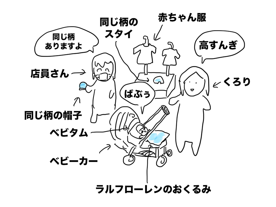 同じデザインの帽子やスタイがあって可愛かったが、スタイひとつで5,000円という高級品だったので何も買わなかった。