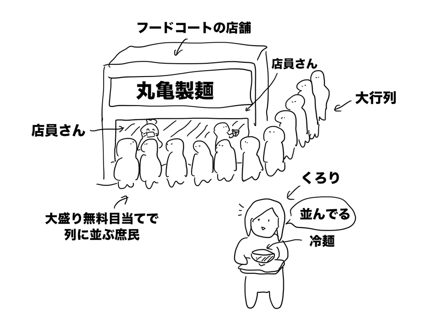 無料で大盛りキャンペーンをやっている丸亀製麺だけ、やけに長い行列ができていた。