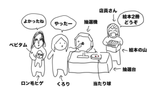 今日は近所の喫茶店で出会ったお姉さんの旦那さんが、子供向け古本屋さんでキッチンカー出すって言ってたから遊びに行くよ!