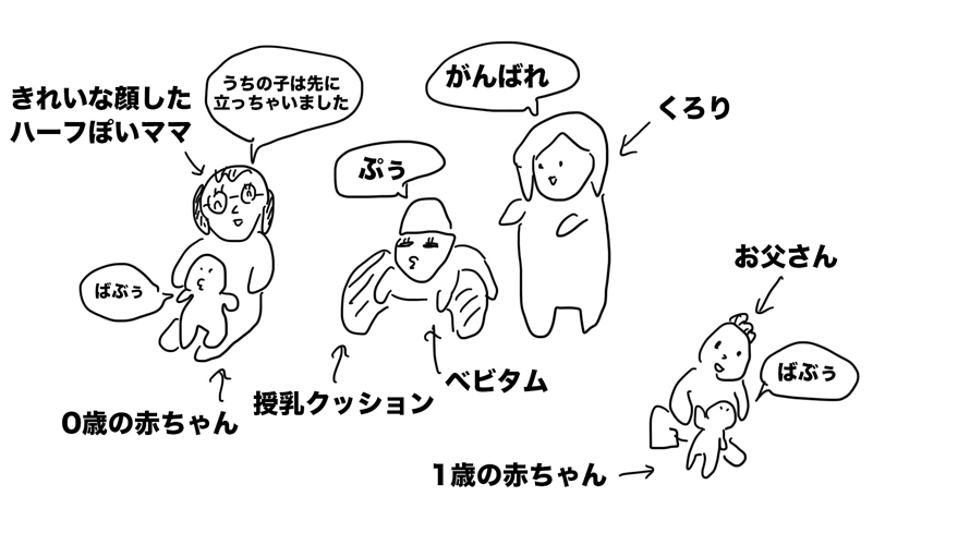 ベビーゾーンには1組のみ。とりあえず、いつも通りベビタムにうつ伏せ練をしよう。