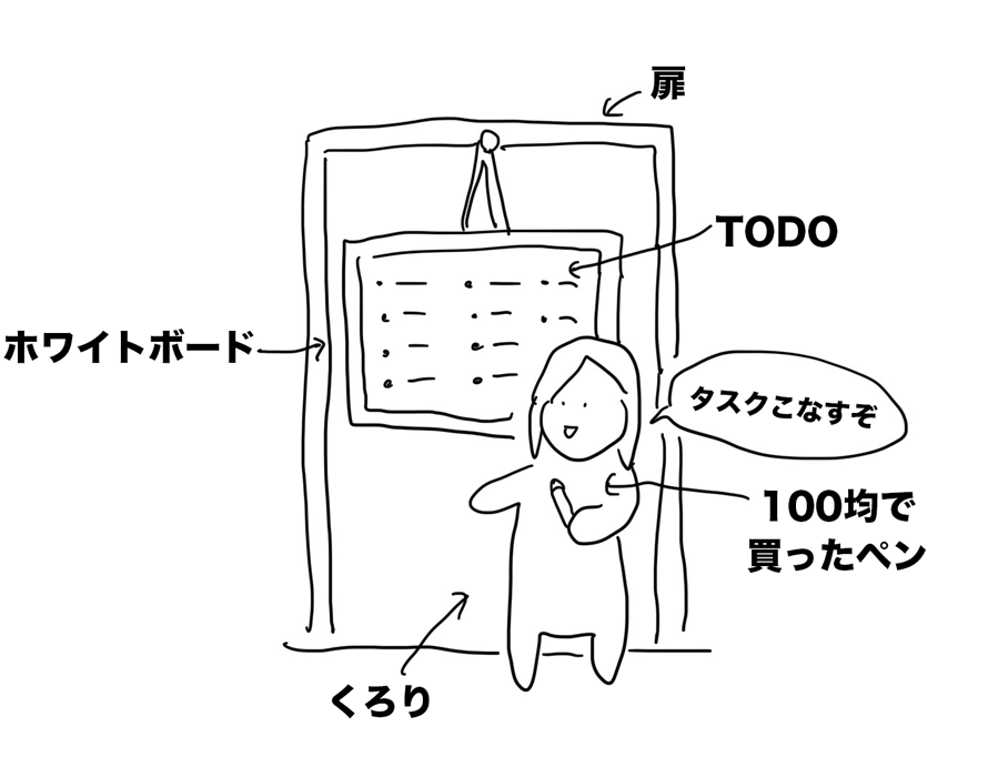 帰宅後は、TODOを記入しているホワイトボードを綺麗にして、やることを改めて書き直し。