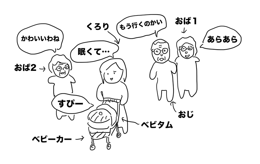 奇跡的に、コープの人が来る2分前に眠りにつくベビタム。そして、玄関に座り込むコープおばさん。